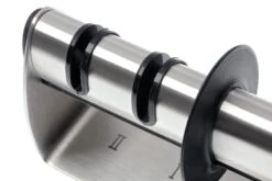 Le Vulkanus Classic Generation 2 est une version en plastique du l’aiguiseurs à couteaux nouvelle génération Vulkanus. Les performances de cet aiguiseur ont été encore améliorées. Par exemple, le matériau et la forme de la partie qui aiguise ont été améliorés et l’angle d’aiguisage a été élargi de 11° à 21°. En outre, les éléments aiguisant sont désormais faciles à changer si nécessaire. Les ressorts ont également été modifiés, ils sont désormais dissimulés et leur force de pression a considérablement augmenté. Le Vulkanus Professional Generation 2 excelle avant tout par sa rapidité et sa simplicité. Il suffit de passer la lame du couteau plusieurs fois dans la fente pour obtenir un tranchant aiguisé.